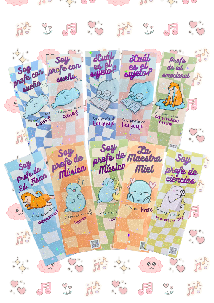 Tenemos diseños para distintas asignaturas, ¡porque cada profe tiene su estilo! Son prácticos, resistentes y con ese toque especial que dice “profe, eres lo máximo”. Perfectos para que no pierdan la página… ni la paciencia.